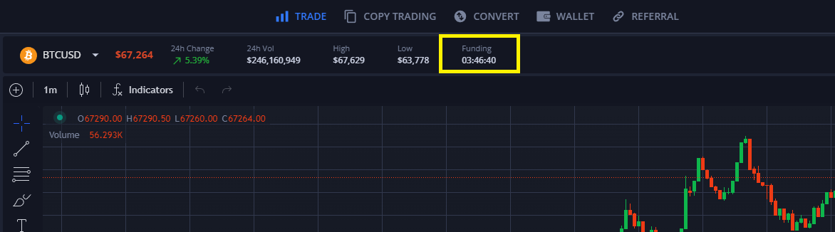 Um die aktuellen **Finanzierungssätze** für das ausgewählte Handelspaar zu überprüfen, klicken Sie einfach auf den Finanzierungstimer: