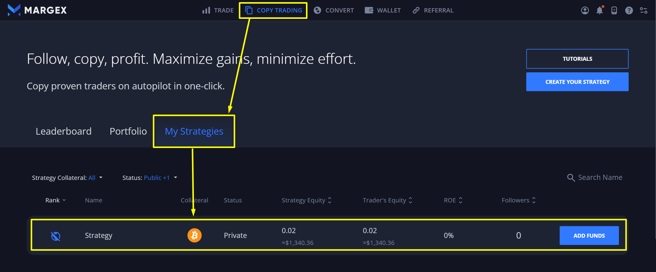 *Per imparare come creare una strategia, ottenere seguaci e iniziare a fare trading, assicurati di consultare la nostra breve guida per principianti per i trader:* [*Avvio rapido (Traders): Come creare una strategia.*](https://help.margex.com/help-center/it/copy-trading/traders/quick-start-how-to-create-a-strategy)