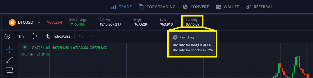 Per controllare i tassi di finanziamento correnti per la coppia di trading selezionata, clicca semplicemente sul timer di finanziamento: