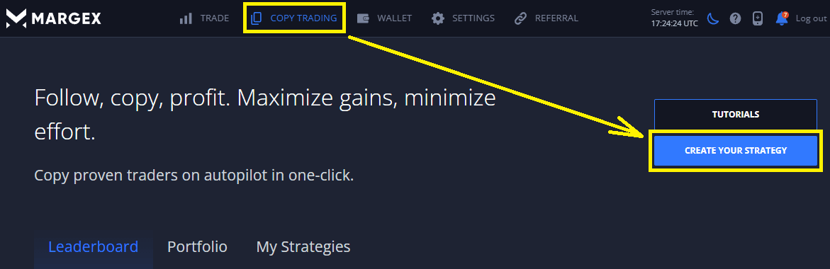 Kendi stratejinizi oluşturmak için: 1. Kopya Ticaret sekmesine gidin 2. 'Strateji oluştur' düğmesine 3. Strateji adını, özkaynak ve diğer parametreleri seçin 4. Stratejiyi yayınlayarak takipçi kazanın
