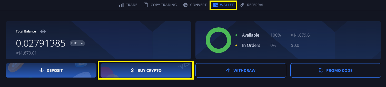 * Сlick on the 'BUY CRYPTO' button: